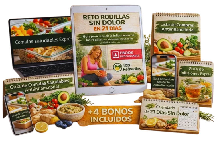 Incluye recordatorios de alimentación, infusiones, movimientos y hábitos clave para desinflamar y sentir alivio real en tus rodillas.
