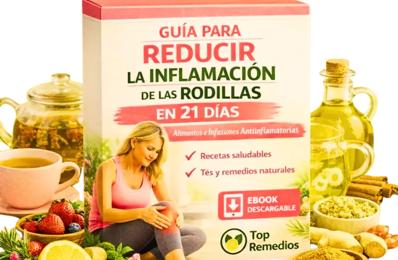 Un listado claro y ordenado con los ingredientes naturales, infusiones y alimentos clave para reducir la inflamación y cuidar tus rodillas desde la cocina.